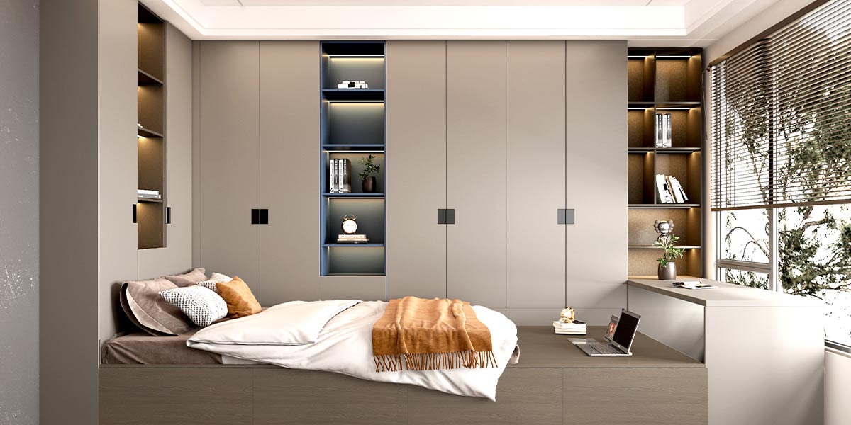 This wardrobe design is inspired by the designer’s pursuit of the unique minimalist aesthetic of the space. It is simple and practical. The door handles are integrated design, increasing the integrity of the product. The door panels have a large area of natural wood accents, which looks refreshing and natural.