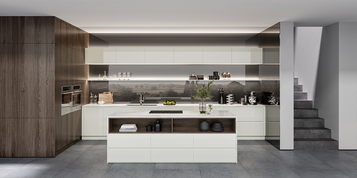 White Parallel Kitchens With Handleless Cabinets